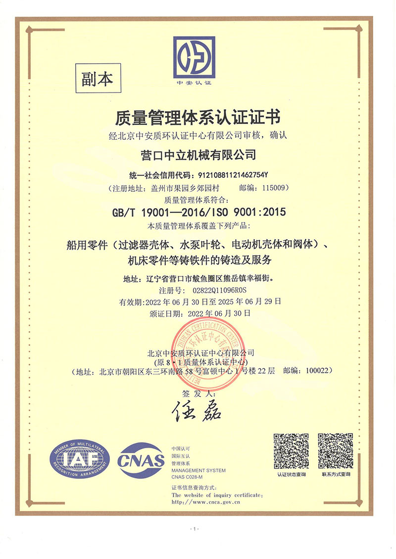 營口中立機械有限公司位于營口市鲅魚圈區(qū)熊岳鎮(zhèn)幸福街,成立于1982年,占地面積15000平方米,建筑面積10000平方米,是從事高性能鑄鐵件生產(chǎn)的專業(yè)廠家。年生產(chǎn)能力5000噸。鑄造采用電爐熔煉呋喃樹脂砂造型先進(jìn)工藝生產(chǎn),產(chǎn)品具有材質(zhì)性能高、形狀復(fù)雜、尺寸精度、表面美觀等特點。多年來產(chǎn)品主要出口日本、德國及英美等國家,產(chǎn)品種類有機床、電機、船用閥門水泵、工程機械等千余品種鑄件或加工配套產(chǎn)品。