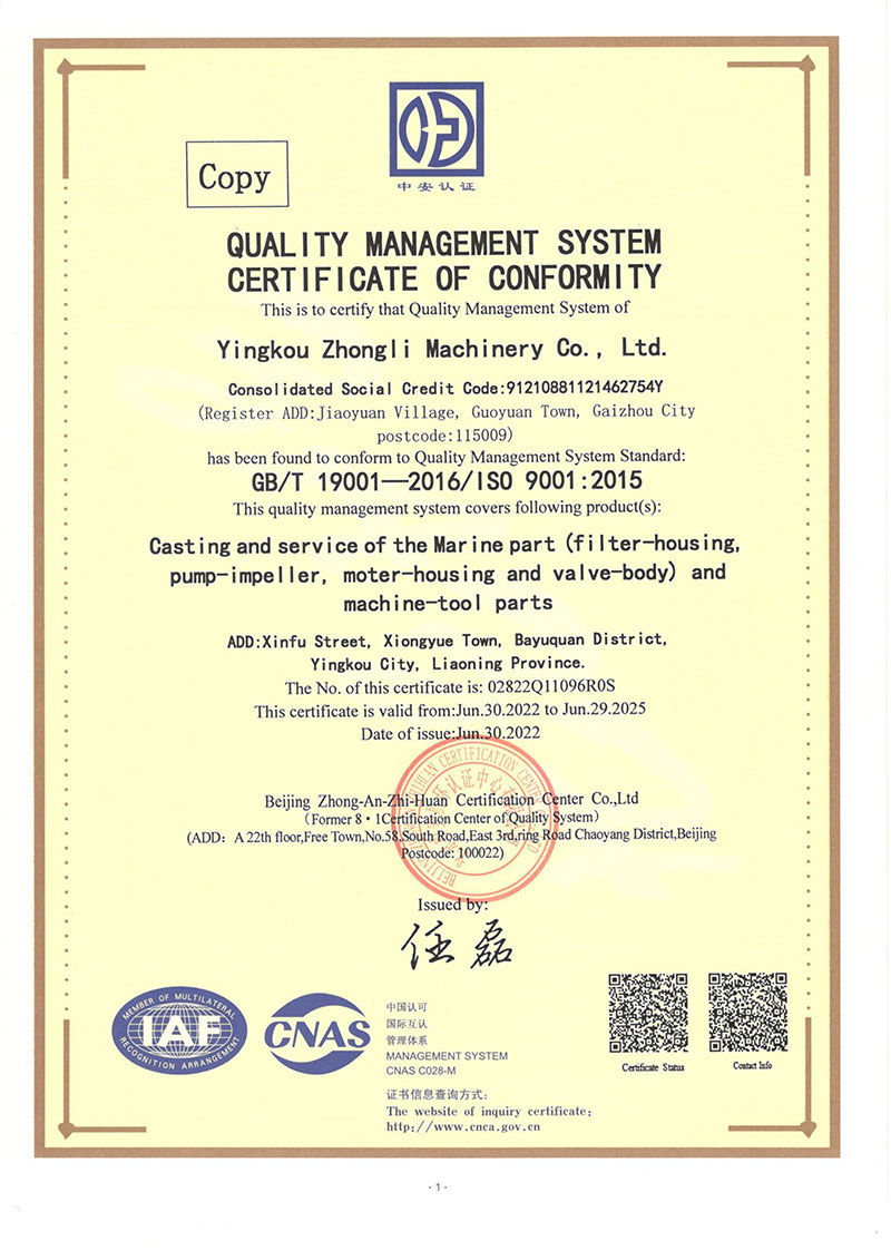 Established in 1982, Yingkou Zhongli Machinery Co., Ltd. is a professional manufacturer that is concerned with the design, development and production of high-performance iron castings.